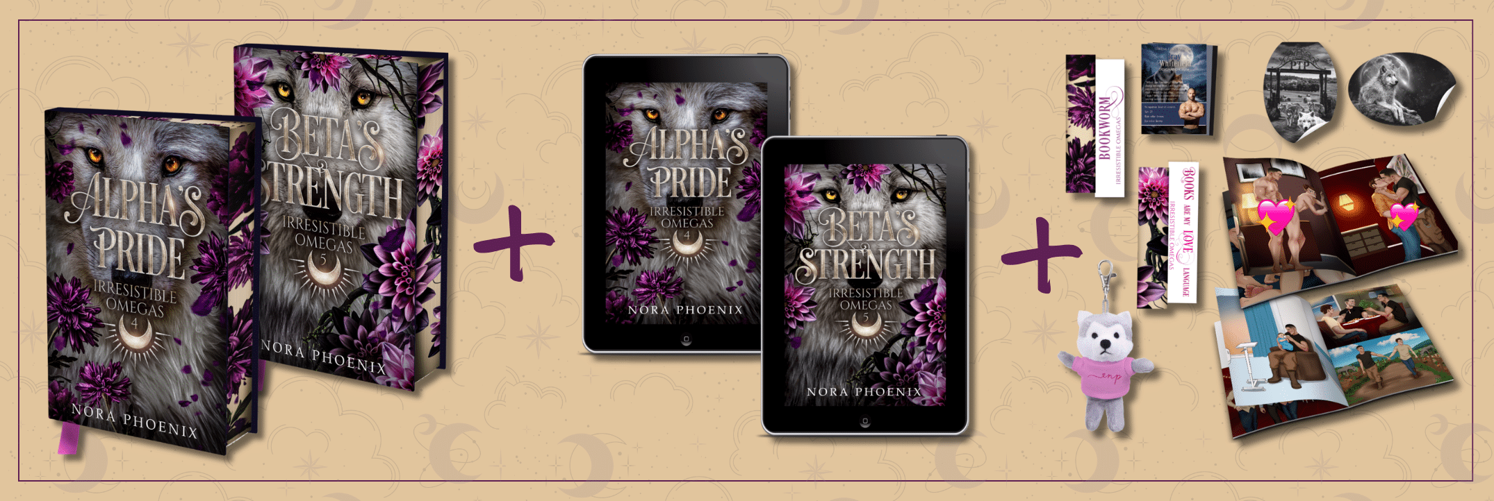 Two companion booklets—one sweet, one spicy—offering a mix of bonus content, scenes, and visuals you won’t find in the books.