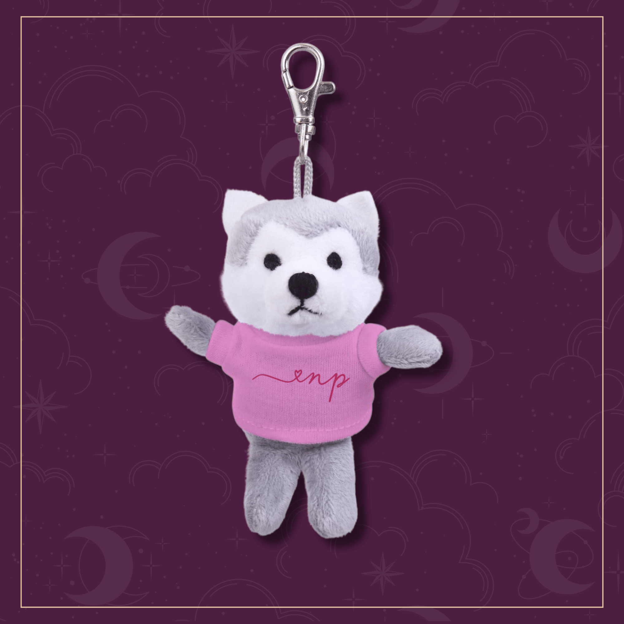 A soft wolf plushie keychain, perfect for adding a little pack spirit and created as an exclusive bonus for this bundle