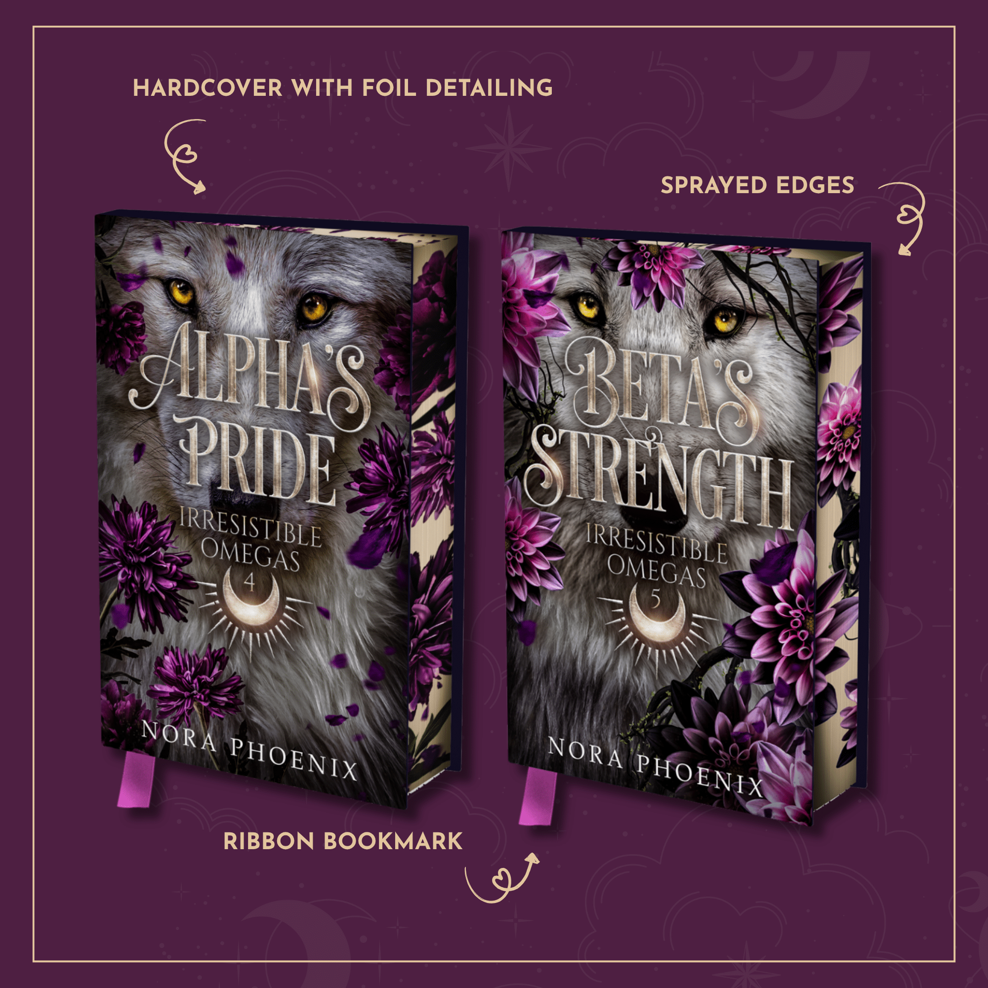 - the special edition hardback of Alpha’s Pride, Book Four (6×9 hardback with foiling, sprayed edges, full color endpapers, and more)